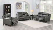 A high leg reclining Loveseat draped in luxurious top grain leather with faux-leather sides, the Trento features power footrest and power headrest for a comfortable yet stylish presentation. The center Console offers valuable storage and 2 hidden USB and 2 electrical outlets for recharging.