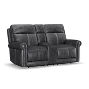 Alexander - Power Reclining Loveseat With Console, Power Headrest & Lumbar - Weathered Stone Gray
