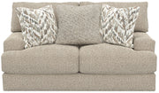 Brett features the ultimate comfort of our Cuddler Cushion and offers a mix of toss pillows in a variety of colors and textures - including a luxurious "fil coup��" (or "cut threads") treatment. This stationary sofa group is available in your choice of two colors: Lotus or Honey.