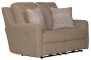 Calvin has a transitional design with a modified track arm and soft chenille fabric. The Calvin loveseat includes two fashion accent pillows. Calvin is available in your choice of two colors - Otter or Putty.