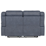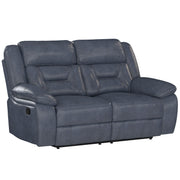 With its plush headrest, pillow-top arms, and precisely placed lines of tufting on the backrests, the Declan collection is ready to set sail. This transitional reclining sofa, loveseat, and chair effortlessly fit into both contemporary and casual living rooms. Featuring a smooth metal motion lever for easy reclining, the durable genuine leather upholstery provides lasting comfort where it matters most, complemented by matching faux leather on the sides and back. The swivel glider recliner chair is a true captain’s chair, with a smooth glide and swivel mechanism perfect for navigating your downtime. In a calming dark blue-gray hue, the Declan collection makes every living space feel like your personal harbor.