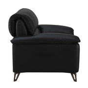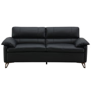 The Eilene sofa offers a luxurious blend of style and comfort with its black top grain leather upholstery. Full foam cushioning and a wooden inner frame provide robust support. Complemented by sleek aluminum legs, this sofa promises durability and modern elegance, making it the perfect centerpiece for any sophisticated living space.