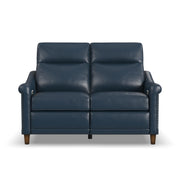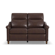 Timeless, traditional details meet today’s modern comfort capabilities with the Elizabeth leather power reclining loveseat. Inspired by vintage stationary furniture, this loveseat features sloped, petite roll arms, curved side base rails and decorative nailhead trim reminiscent of a bygone era. A high-divide back, extended footrests and powered headrests provide support for complete relaxation. Upholstered in a buttery-soft, durable, brunette brown leather, the Elizabeth loveseat exudes elegance and luxury.
