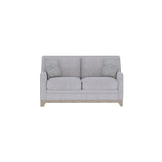 - The Kora loveseat layers together beautiful tailoring and textures in a neutral, sophisticated palette with solid wood exposed base.