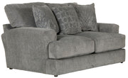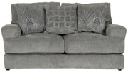 Looking for comfort and style? The Lamar loveseat is just what you are looking for. The exclusive extra thick "Cuddler" cushions are constructed of individually pocketed coils encased in a thick layer of low compression foam and topped with a layer of cool gel infused memory foam. This unique seat construction creates a softer ride that is perfect for cuddling up and relaxing but is still supportive. The beautiful soft chenille body fabric is accented by large tonal toss pillows. The frame features steel tech frame technology using a tubular seat box reinforcement that is also used to secure the sinuous springs for the seat deck. The Lamar will be a stunning focal point of any room.