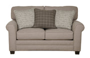 Lewiston a Farmhouse Casual style with a sock arm treatment, wooden legs, and included accent pillows. Product . "Farmhouse Casual" Styling. Soft "Heathered" Polyester Body Fabric. Transitional Sock Arm Design. Accent Pillows Included. Steel Tech Framing. Wooden Legs. Comfort Coil Seating featuring Comfor-Gel.