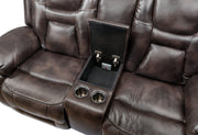 Start your engines with the Dual-Power Oportuna motion group. Elaborate padding and stitching give your seat the look and feel of a race car right in your living room. Draped in beautiful coffee leatherette, this group also has all the bells and whistles you crave with a Dropdown console that serves as the hub of your living room.