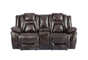 Oportuna - Dual Power Console Loveseat - Dark Brown