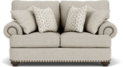Prominently rolled arms and a padded front rail give Patterson its welcoming appearance. Overstuffed seat and back cushions on a large frame make it difficult to resist curling up on this piece. Fluted bun feet and optional nailhead trim add the finishing touches to Patterson.