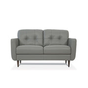 Assembled, Loose Back & Tight Seat Cushion (2+2), Button Tufted •• CONSTRUCTION •• SEAT: Webbing; Inside Frame: Wood, Contrast Tone Stitching, Box Cushion • BACKREST: Button Tufted Cushion • ARMREST: Flared Style, Arm Size: 5 Inches • Wooden Tapered LEG: Dark Walnut Finish; Leg Size: 6 Inches ••• Material: Leather (Solid Pattern) • Pillow NOT Included