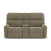 Traditional frame with modern features. Rios traditional frame is highlighted with subtle back wings and inset padded armrests that peek up for an interesting appeal. Its divided back cushion provides support all the way from your neck down to your lumbar region for full support. A smooth reclining mechanism lets you change angles effortlessly from an upright to a fully reclined position. Keep your remotes, books and more tucked away in the center storage console, which includes two cupholders for drinks.