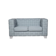 The Saree loveseat uses simple lines to create a striking boxed-shaped silhouette. This loveseat delivers a unique aura into any living space with its light teal chenille and white finish. It is designed using a unique knitting process that adds texture and depth; this makes the pieces bold and lively in appearance. The pocket coil seating makes it luxurious to lounge on.