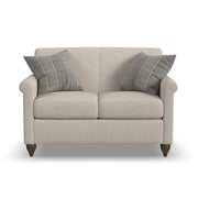 The perfect elegant piece to accentuate your home, the picturesque petite roll arms of the Stella loveseat invite you in. Take a seat atop removable and reversible cushions that are supported by our patented Blue Steel Spring system – backed by our lifetime guarantee. Handcrafted with a durable frame and upholstered with careful detail, Stella is designed to last. The tight back and turned wood legs give this quaint loveseat a modern flair. And with two accent pillows in your choice of fabric, elevate your home with the chic style of Stella.