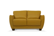 Assembled, Loose Back & Tight Seat Cushion (2+2) •• CONSTRUCTION •• SEAT: Webbing; Inside Frame: Wood, Same Tone Stitching, Box Cushion • BACKREST: Loose Cushion • ARMREST: Flared Style (Slightly Sloped on Top), Arm Size: 6 Inches • Wooden Block LEG: Dark Walnut Finish; Leg Size: 3 Inches ••• Material: Leather (Solid Pattern) • Pillow NOT Included