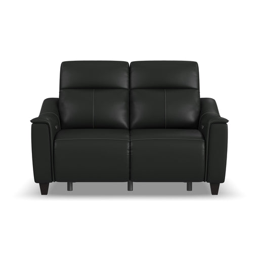Alluring modern style merges with motion technology in the Walter leather power reclining loveseat with console. Featuring thin, pad-over sloped tr...