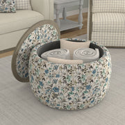 Cecily draws quiet attention with its balanced blend of structural and tailored shapes. Starting with a solid wood floating base, soft, cream-colored fabric covers the uncluttered lines and clean silhouette of the sofa, loveseat, and chair. Swivel chairs in floral and windowpane patterns are trimmed on all edges with shapely wood for stylish accessories. Completing the ensemble is a coordinating ottoman with hidden storage and castors to glide with ease. The Cecily collection will be the belle of your room with its transitional appeal.