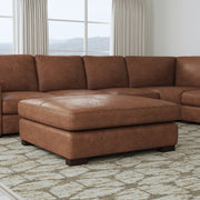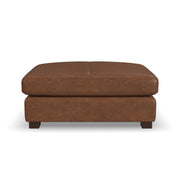 Enduring comfort and timeless transitional style distinguish the Endurance cocktail ottoman, the perfect place for a cocktail tray or for additional impromptu seating as needed. Fully upholstered in a chestnut top-grain leather with distinct character, and anchored with dark wood square block legs, this ottoman offers a luxe look designed to stand the test of time in both look and function.