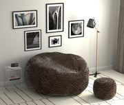 Comfort Sack and Footstool available in three colors: Chocolate, Parchment, and Grey.