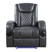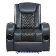 Alair - Power Motion Recliner With Bluetooth, Wireless Charger & Cupholder - Blue & Black Leather Aire