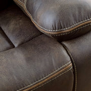 The Jessie James motion collection offers luxury and style with ultimate comfort and convenience. The richly colored faux leather is contrasted by white topstitching creating an eye-catching detail. The well-positioned recline feature handle blends in nicely, offering modern amenities within a traditional design. You can have comfort without sacrificing style with the Jessie James collection.