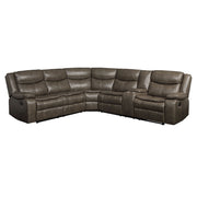 For the ultimate in comfort and relaxation, make this Tavin Collection sectional the highlight of your living area. Whether you're entertaining guests, cheering on your favorite sports team, or simply relaxing with a good book, this L-shaped sofa makes everyone feel at home. Featuring a wooden inner frame and pocket coil seats, this sectional is wrapped in luxurious Leather-Aire Match material to give you the look and feel of leather, without the high price tag. The modern design offers comfortable seating for five with three stationary seats and two motion-reclining seats, and includes a built-in console and two cup holders.
