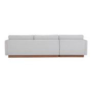 The Vernon sectional blends mid-century design with modern functionality. It features a wooden plinth base for an elevated, lighter appearance. This sectional offers unmatched comfort with reversible cushions. Upholstered in durable, OEKO-TEX and Green Guard-certified fabric, it is ideal for family living, combining everyday practicality with durability.