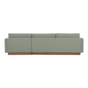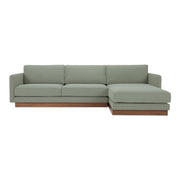 The Vernon sectional blends mid-century design with modern functionality. It features a wooden plinth base for an elevated, lighter appearance. This sectional offers unmatched comfort with removable cushions. Upholstered in durable, OEKO-TEX and Green Guard-certified fabric, it is ideal for family living, combining everyday practicality with durability.