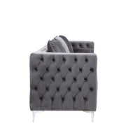 The Bovasis sofa and ottoman are ideal for smaller spaces. In a contemporary design featuring nailhead trim and sturdy metal legs. The beautiful velvet upholstery is soft to the touch and the button tufting adds dimension to the sofa. Pair it with the matching ottoman to complete the look. Available in two colors.