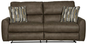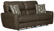 Dorian offers space-saving scale with all the comfort you have come to expect from Catnapper. A wide 2-over-2 seat provides ample seating while thin padded arms keep the overall width suited for condo or apartment living. A faux leather fabric with decorative accent pillows complete the look.
