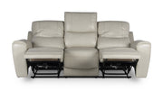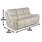 Contemporary styled collection constructed in leather with power leg rest and power articulating headrest. Laurel features both styling and convenience with USB charging port on the control panel along with a home button to return the piece to its original position. The sofa and loveseat feature dual reclining seats and the loveseat feature a console with cup holders and hidden storage.
