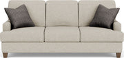 Cozy up with a loved one or claim it all for yourself with the Moxy sofa that lets you personalize details for the perfect look and feel. Sleek track arms provide a contemporary vibe. Square tapered leg in a choice of three distinct wood finishes—Florentine, Valencia, or Urban Renewal—to complement any décor. The removable T-shaped seat cushions offer a distinctive look and added comfort. Sink into the ideal level of support with your choice of our luxury or plush cushions. Complete the look and showcase your lifestyle with hundreds of different fabric choices, including high-performance and sustainable textiles. Superior frame construction and our patented C-Flex Blue Steel Spring™ ensures your Moxy can be enjoyed for years to come.