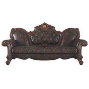 The Picardy sofa collection brings the influence of European antiques to life with traditional carvings, detailed looping, and gorgeous vintage finish. The hand-applied finish enhances the beauty of the intricate woodwork and moldings. The sofa features cabriole legs and covered with luxury upholstery. This elegant collection will surely bring true splendor into your home.