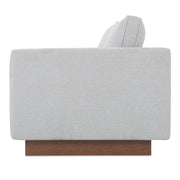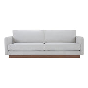 The Vernon sofa blends mid-century design with modern functionality. It features a wooden plinth base for an elevated, lighter appearance. This sectional offers unmatched comfort with removable cushions. Upholstered in durable, OEKO-TEX and Green Guard-certified fabric, it is ideal for family living, combining everyday practicality with durability.