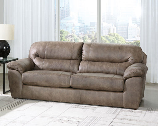 BRADSHAW is an extra-wide two-seat design featuring a decorative pub back and a faux leather fabric. Bradshaw - Queen Sleeper - Mushroom95.0"W x 43...