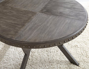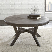 Mixed media and geometric designs combine in a soft gray palette for the Alamo Occasional tables. The Alamo Cocktail Table is constructed of paulownia veneers in a gray finish with a gray metal base with black hand brush accents. The table features a round parquet veneer top with a decorative metal rim accented by the unique geometric metal base. Also available for purchase separately is the matching end table. Your purchase includes one cocktail table.