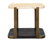 Avalon - End Table - Bronze Metal Frame With Travertine & Espresso