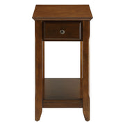 Classic and timeless without being garish. The wooden accent table shows it's elegant silhouette in a attractive finish. A storage drawer under the table top helps your hide odds and ends around the living area, with a bottom shelf for magazine or decorations display. Every living room needs this lovey complement. Use the Bertie Accent table to set a warm, homey wood tone in your home.