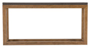 With a simple and straightforward square-shaped silhouette that evokes the weight, heft and heritage of beam construction, the Big Sky Sofa Table boldly contrasts a Vintage Natural wood base with a crosshatch texture on the top in the charcoal Furrowed Bark finish.