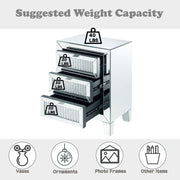 - Mirrored Case Frame: 4mm Beveled Mirror, MDF; FRONT DRAWER]: Faux Diamonds Inlay, 4mm Clear Tempered Glass
