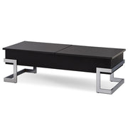 The Calnan coffee table has it all, good looks with its chrome modern legs exposed on the outside of a box top. Full of surprises, like lift top tray and slide top storage with additional storage under the lift up tray. This table will ensure your living area remains clutter free.