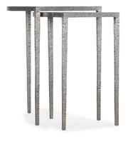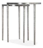 With a hand-forged authenticity, these slender, light, and airy Chapman Nesting Tables are crafted of hand-hammered metal with a pewter finish. The smaller table fits beneath the larger one.