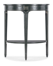Inspired by the English heritage and charm of the coastal South, the Charleston Demilune Accent Table is offered in a semi-circle demilune shape with one fixed shelf, carved accents and subtly highlighted finish trim. Crafted of Maple Veneers, the piece is finished in Charleston Green, a weathered interpretation of the classic dark, almost black, green that adorns trim, shutters and doors across the historic district of Charleston. Embellished with regionally-inspired hand painting.