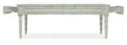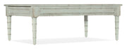 Inspired by the tropical craftsmanship of the West Indies and classic British and Dutch Colonial design periods, the Charleston Rectangle Cocktail Table has Bamboo-designed accents. Crafted of Maple Veneers and Resin, it is finished in Haint Blue, a soft color which can be found on the ceilings of porches and entryways, window shutters and doors in the American South, dating back more than 200 years from the Gullah folklore that held the color kept “haints” or spirits from entering homes and dwellings.