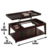 • Lift-top cocktail with casters and bottom shelf for display or storage