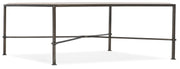 In a light-and-airy style that’s a breath of fresh air, this distinctive cocktail table has a dark charcoal textured metal frame, base and X-stretcher and a creamy beige marble top in a blend of neutrals to fit in a wide range of interiors.