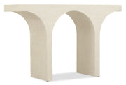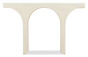 The Archer Console Table from the Commerce & Market collection combines rustic charm with modern design. Crafted from wood and burlap, the table features a fully lacquered burlap-wrapped finish in a "Pebble Beach" lacquer. Its narrow, rectangular shape and arched design make it a stylish yet functional addition to entryways or living rooms. Perfect for transitional interiors, this console table brings a unique texture and elegance to any space.