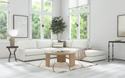 With a youthful and energetic sensibility, the Commerce & Market Round Cocktail Table is crafted of Mindi Solid Wood and has three wide legs and a soothing natural wood finish. The convenient round shape is versatile for a variety of spaces.