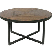 The Denton occasional collection is a study in simplicity. A straightforward cross of welded metal tubing finished in a steel gray tone and paired with a rustic pine-look planked top. The round cocktail table pairs well with today's sectional sofas and the petite round end table is the perfect accent piece.