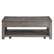 Dexter puts the "fun" in function with this Lift-Top Cocktail occasional set that features rustic styling with beautiful rough-hewn posts. The signature driftwood finish adds to the rustic feel of the collection while the "x"  motif gives just the right amount of flourish to a solidly styled table set. Match up Sofa & End Table with the Lift-Top Cocktail Table to outfit your room perfectly.