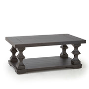 A new take on classic farmhouse styling, the Dory occasional collection looks like it was plucked out of an English pub. The neutral ebony finish and plank top will blend well with any casual decor whether rustic or cottage styling. Beefy tops and sculpted posts combine with a large scale to give the collection a very substantial feel. Choose from Cocktail or several end table options.